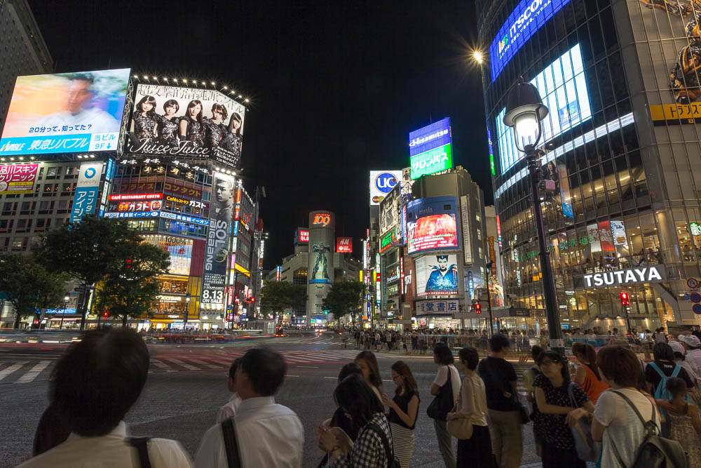 Ondertussen is het donker, lights are on en de mensenmassa toe genomen! Mee gaan het kruispunt over is een ervaring en opwindend! Sensory Overload! Al vind Lara het allemaal soms even teveel indrukken tegelijk, ze geniet met volle teugen!