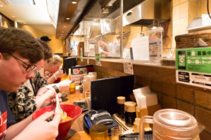 In Shibuya gaan we naar een zogenaamd kaiten sushi restaurant maar dan met een twist, het een conveyer belt restaurant, dus op de lopende band maar hier bestel je op een tablet die voor je hangt (in english dank u) per 3 porties en een paar minuten later komt die voor je, bordjes eraf en drukt op de knop en plankje gaat weer terug naar de keuken, briljant concept! Ik zie een gat in de markt, hmmmm. Sushi is niet high-end maar heerlijk. Voor diegene die naar Takumi gaan, vergelijkbaar.