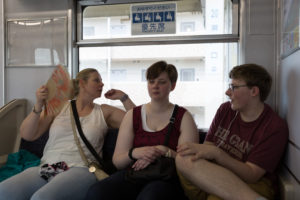 Alweer dinsdag en ook vandaag weer een zinderende mooie dag in Tokyo. We gaan na een langzame start, (het lichaam protesteert hier en daar) naar Akihabara, wat hoog op het lijstje staat van Lara. Hier is vanalles te bemachtigen wat met manga en anime te maken heeft, of wat maar te maken heeft met Otaku, de jongerencultuur van Japan. Hier zijn warenhuizen vol met 7 verdiepingen vol met spullen, dus op en neer, in en uit. En na wat gelukzalige uitroepen, uitwisselingen van Yens, vullen de koffers van kids zich gestadig. Helaas voor Lara nog geen leuke hipster of cosplay kleding, maatjes geschikt in europa voor de kinderafdeling, niet voor een gezonde hollandse 16 jarige. Gelukkig wel 2 boeken vol met patronen en methodes voor j-pop kleding gevonden, dus thuis aan de slag. Een deze dagen naar de fabric district dan maar…
